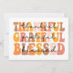 El diseño titulado "Agradecido, Agradecida, Bendito" es una representación vibrante y edificante de la temporada de Acción de Gracias. Cuenta con tres palabras clave, cada una expresando un sentido de gratitud y positividad.