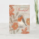Celebra una familia especial o un amigo con una tarjeta de Acción de Gracias que presenta un robo encantador entre hojas de oro y flores en un estilo de collage. O cambiar el versículo interior y hacer de esto una carta general de "gracias".