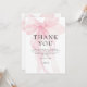 Agradecimiento de Baby Shower con Superposición de Texto y Lazo Rosa Suave. Disponible digitalmente e impreso. Personalice fácilmente el texto con sus datos. Un lazo rosa coqueto está teñido en el fondo con las palabras superpuestas encima.