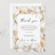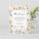 Agradecimiento para Despedida de Soltera con Borde Floral Blanco y Dorado Love In Bloom. Disponible digitalmente e impreso. Elegancia moderna, con Love in Bloom y Gracias en un estilo de escritura a mano. Personalice fácilmente el resto del texto con sus propios detalles.