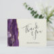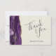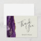 Esta elegante tarjeta de agradecimiento de boda plano presenta un borde de agate color morado con un falso purpurina de oro. El texto del personalizable combina las palabras "Gracias" en escritura a mano gris carbón y los nombres de la novia y el novio en letra cursiva en un fondo de marfil. Agregue su propio mensaje personal al reverso en blanco.