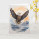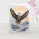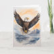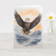 Majestuoso águila calva con alas extendidas en alto sobre el mar. Tarjeta de felicitación en blanco para cumpleaños, aniversario, nuevo bebé, gracias, pésame, etc.