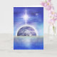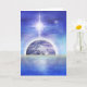Imagen azul de la Tierra medio sumergida en el agua con una gran estrella en el cielo. Por Daniel B. Holeman.