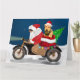 Un Santa Claus montando en bicicleta entregando un árbol de Navidad y un perro Airedale Terrier como regalo es una idea de regalo de Navidad perfecta para alguien que ama esta raza de perro.