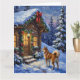 Tarjeta Akita Dog Christmas Log Cabin Holiday