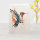 Colibrí que viene a aterrizar. Tarjeta de felicitación en blanco para cumpleaños, aniversario, nuevo bebé, gracias, pésame, etc.
