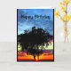 Una fotografía de una puesta del sol anaranjada, púrpura y azul del lago, con un árbol elevado en el primero plano, es el tema de mi "feliz cumpleaños - así que alegre pertenecemos al mismo árbol de familia!" tarjeta de cumpleaños. Capturé esta escena a lo largo de la línea de la playa del Winnebago hermoso del lago en Quinney, Wisconsin.