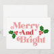 Ilumina tu temporada de fiestas con este diseño "Alegre y Brillante". Con tipografía elegante en tonos suaves de rosa y rojo, acentuada con hojas y bayas de acebo clásicas, este diseño captura la alegría y el calor de las fiestas. Perfecto para una variedad de productos de Zazzle como camisetas, tazas y adornos, es ideal para agregar un toque festivo a tu decoración o regalar a seres queridos.