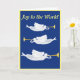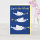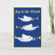 Tarjeta Alegría al mundo ángeles de Navidad con trompetas