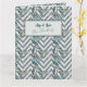 Una elegante tarjeta de saludo con un sinsonte de pájaro, hiedra verde y ilustraciones florales amarillos sobre un patrón de zigzag gris. ¡Puede personalizar este diseño con un título/mensaje propio y con su apellido! Este diseño es genial para enviar cualquier tipo de saludos a tus amigos.