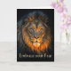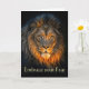 Tarjeta de aliento para alguien que enfrenta un desafío, un tenedor en el camino, un nuevo camino o aventura. Habla de crecimiento y de salir de su zona de confort. Un hermoso león y un texto personalizado.
