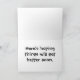 Card representa a un motociclista "falso", cabeza primero en un montón de paja con su motocicleta a un lado. El texto que hay dentro dice: "Esperemos que las cosas mejoren pronto". Todo el texto frontal y el interno es personalizable a tus propias palabras.