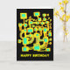 Una colorida red abstracta como la estructura tal vez que recuerda a un circuito o mapa de algún tipo. Digitalmente pintado de amarillo y turquesa con un desfase rojo que le da un aspecto estampado. El diseño fue creado en parte con efectos de pintura al óleo digital, lo que le da un atractivo aspecto estampado a mano. Feliz cumpleaños por delante y por dentro. Para decorar el texto en el interior también se utiliza un dibujo en blanco y negro más pequeño del diseño frontal.