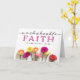 Alentar a alguien que muestre una fe notable en su lucha contra el cáncer con este diseño tipográfico de estilo caligráfico único, con el mensaje "Fe inquebrantable". Es innegablemente tuyo. El diseño se acentúa con flores de colores en el borde inferior. Inside tiene este mensaje pero puede ser personalizado para que se ajuste a sus necesidades personales: "Pensando en usted hoy y en todo lo que está enfrentando. No escogiste esto y definitivamente no es justo. Pero por lo que eres, lo estás enfrentando todo con coraje, valentía, determinación y fe inquebrantable. Te admiro y creo que Dios recompensará tu fe con comodidad, paz y victoria.