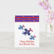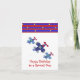 Un diseño divertido acentúa esta tarjeta de cumpleaños. Tres aviones disparados en tonos azules con propulsores rojos. Borde de rayas azules y rojas con pequeñas estrellas amarillas. Personalizar como se desee.