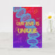 Expresa la singularidad de tu improbable historia de amor con esta tarjeta colorida que presenta una doble hélice de ADN, salpicada de dopamina, oxitocina y serotonina, tres de los neurotransmisores más asociados con el amor.