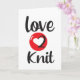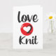Tarjeta de felicitación Ama tejer 2. Letras grandes negras y rojas. Ideal para una tarjeta de cumpleaños para una persona que ama tejer.
