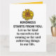 Amabilidad Inspiradora Cita Cita Sunflower Kindness Card diseño original de Nisha Prabhu. ¡Abróchese el día de alguien con nuestra tarjeta de amabilidad de girasol! Con un vibrante diseño de girasol, esta tarjeta es un hermoso recordatorio de la calidez y positividad que la bondad trae a nuestras vidas. La cita inspiradora en el frente capta la esencia de difundir alegría y compasión. Perfecto para cualquier ocasión, ya sea para animar a un amigo, agradecer a un ser querido, o simplemente compartir un poco de sol. ¡Comparte tu mensaje de corazón con estilo y deja que florezca la bondad! ¡Compra ahora y difunde el amor!