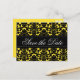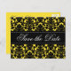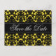 Esta tarjeta postal amarilla y negra de damasco para guardar la fecha coincide con la invitación de boda que se muestra a continuación. Si necesita otros artículos coincidentes en este diseño, por favor envíe su solicitud por correo electrónico a niteowlstudio@gmail.com.