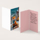 Ilustracion del alegre zorro antropomórfico sentado en la vibrante calle de la ciudad, ahora transformado para las vacaciones. El zorro, adornado con una bufanda roja juguetona y un pequeño sombrero de Santa, luce de alegría. El fondo urbano está empolvado de nieve suave y blanca, creando un ambiente acogedor y festivo. Los copos de nieve caen suavemente alrededor de la escena y los árboles que bordean la acera están decorados con luces brillantes y adornos coloridos. El coche vintage de color azul claro está ahora adornado con una corona en la parte delantera, lo que realza el encanto caprichoso.
