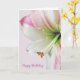extreme closeup of amaryllis flower on pastel pink background for birthday