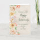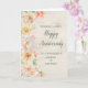 Feliz aniversario de boda para un amigo y su esposa con elegantes flores de color agua pastel y vegetación primaveral y un patrón rústico de madera.