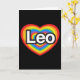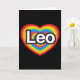 Un objeto del afecto. Amo a Leo. Te amo Leo. Una tarjeta del día de San Valentín para Leo, el feliz cumpleaños Leo, o un sentimiento diario. Personalizado, modificado para requisitos particulares/personalizable. Un corazón del arco iris de Leo.