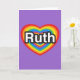 Un objeto del afecto. Amo a Ruth. Te amo Ruth. Una tarjeta del día de San Valentín para Ruth, el feliz cumpleaños Ruth, o un sentimiento diario. Personalizado, modificado para requisitos particulares/personalizable. Un corazón del arco iris de Ruth.