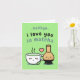 Muestra a tu amante que te importa con esta linda tarjeta del Día de San Valentín. Cuenta con una linda ilustración de una taza de té matcha chibi y batidor. El título dice el nombre del destinatario, que se puede personalizar, y el título 'Te amo tanto matcha'. Arte de PopQTstudio. Para más diseños japoneses, visite mi tienda zazzle.com/popqtstudio