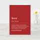 Definición única de "amor" con tipografía minimalista. Tarjeta de felicitación personalizada única para el Día de San Valentín, aniversario o simplemente porque sí. Definición de amor de tipo diccionario rojo intenso con los nombres de su pareja debajo. Personalice el mensaje dentro: "Feliz día de San Valentín" o "Te amo" o "Siempre estaré para ti" y así sucesivamente. Si ingresa a la Herramienta de diseño, también puede cambiar el color de fondo. Tarjeta personalizada moderna de amor para el Día de San Valentín o aniversario para su ser querido.