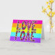 La palabra amor llena de flores, arcoíris y mariposas, tarjeta de te amo morada y rosa bonita. Esta tarjeta es buena para cualquier ocasión romántica como un aniversario o el Día de San Valentín.