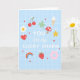 Tarjeta de San Valentín de agradecimiento Lucky Charm Cute Kawaii ilustrada por la diseñadora internacional Kathrin Legg. Tarjeta de Felicitación de Suerte – Símbolos de Buena Suerte Ilustrados sobre Fondo Azul Claro