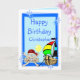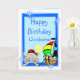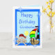Tarjeta de personalizable completa con divertidos piratas y barcos, payaso, pingüino y globos, sobre un fondo azul. Personalice fácilmente este diseño agregando o cambiando el texto.