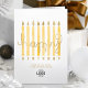 Personalice esta elegante tarjeta corporativa en línea y desee a sus clientes, empleados y socios de negocios un cumpleaños muy feliz con esta elegante tarjeta vertical de cumpleaños feliz para los negocios, con altas velas de color amarillo optimista con falsas llamas de oro y texto escrito a mano feliz cumpleaños en un fondo blanco limpio. Por favor, tenga en cuenta que el oro en este diseño es una impresión a color plano y no es un Relieve metalizado de oro real. También hay tarjetas postales de versión de Relieve metalizado oro disponibles, compruebe la colección o póngase en contacto con el Creador para ver el enlace directo. En la parte delantera y en el interior está el texto personalizado y un lugar para el logotipo de su personalizado. Perfecto para todo tipo de negocios. Este diseño está configurado como una plantilla para su fácil personalización en línea. También está disponible como descarga digital instantánea.