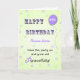 Esta divertida tarjeta de cumpleaños está en colores coordinadores de verdes suaves y morados. Presenta un globo de cumpleaños en un fondo estrellado, y la leyenda "Diviértete, fiesta y envejece con gracia DIS". Personalice el frente con un nombre, modifique la edad según sea necesario y, a continuación, personalice el interior con su propio mensaje especial, o puede utilizar el texto proporcionado: "¡Deseándole una larga vida llena de Feliz Cumpleaños!". La parte frontal interior tiene tres estrellas moradas que hacen juego con el globo, para ser más decorativa.