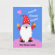 Personalizado, añada su propio texto a la portada de esta tarjeta de saludo de papel El día de San Valentín para cualquiera. Un bonito gnomo está comiendo una barra de chocolate y haciendo ruidos gnom, gnom, gnom. Jugar con palabras con gnom y gnome. El gnomo tiene migajas de chocolate y trozos de barba y también sostiene un globo en forma de corazón rosa. Arte, imagen y verso copyright © Shoaff Ballanger Studios, 2025.