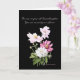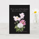 Te has encontrado con las más bellas tarjetas de felicitación floral de Zazzle. Una llamativa imagen de una flor colorida sobre un fondo negro, con saludos apropiados para una ocasión. No sólo el frente es hermoso, la parte trasera también tiene una foto de la flor delantera. Cuando el destinatario termine, enmarque esta belleza en 5x7 para un elegante recuerdo de la ocasión.