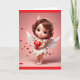 Pretty picture of an angel holding a red heart, is featured on this greeting card for Valentine's Day. Inside of the card reads, "May an angel hug your heart with Love on St. Valentine's Day". A sweet card to send family and friends for St. Valentine's Day!