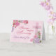Tarjeta de aniversario de boda religiosa para cualquier persona o pareja. Fondo suave de aspecto acuarela rosa con una cruz rodeada de flores. Hermosa tarjeta para desearles bendiciones en su aniversario.