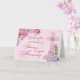 Tarjeta de aniversario de bodas religiosa para tu ahijada y su esposo. Fondo suave de aspecto acuarela rosa con una cruz rodeada de flores. Hermosa tarjeta para desear bendiciones al matrimonio en su aniversario.