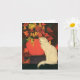 Tarjeta Animales de época, gato blanco elegante, flores de