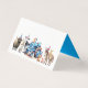 Tarjetas plegadas en blanco con diseño de animales de granja. Se utiliza para una fiesta de cumpleaños para designar asientos o en la mesa para describir los elementos del menú. Las tarjetas son blancas en la parte delantera con un tractor azul y animales de corral con gorras fiestas. Añadir una redacción por encima del diseño. Las tarjetas vienen en paquetes de 25.