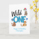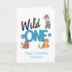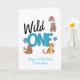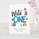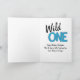 Un fiesta silvestre con globos en la primera carta de cumpleaños. Utilice nuestra plantilla para editar los detalles del fiesta.