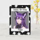 Chica de anime morado y negro con tarjeta de cumpleaños personalizada de orejas zorras.