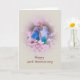 Dos periquitos amorosos combinados con suaves flores de manzano silvestre rosadas sobre un fondo beige claro hacen una tarjeta de aniversario 45 colorida y dulce. El cliente puede personalizar el interior según sus necesidades.