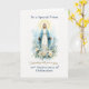 Creado para honrar a un sacerdote que celebra diez años desde su ordenación, este diseño mariano refleja una década de servicio marcado por la devoción, el cuidado pastoral y el creciente liderazgo dentro de la Iglesia. La presencia suave de Nuestra Señora y las flores azules suaves ofrecen una expresión de oración de gratitud por una vocación vivida con fe y dedicación.