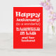 Esta graciosa tarjeta de felicitación por el aniversario da un giro humorístico a las cosas al resaltar a la nuera y poner al hijo, su marido, en un estado algo secundario.