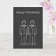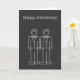 Sr y Sr Feliz aniversario .. tarjeta de felicitaciones de dos novios con dos novios doodle de blanco en un fondo negro de pizarra falsa .. Tarjetas de diseñador gay de Ricaso para aniversario de boda gay