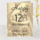 Tarjeta de felicitación de seda personalizada del 12mo de boda vintage del aniversario. Personalizado diseño de tarjeta del aniversario de 12 años con nombres y la fecha.