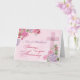 Tarjeta de aniversario de boda religiosa para su sobrina y su esposo. Fondo suave de aspecto acuarela rosa con una cruz rodeada de flores. Hermosa tarjeta para desear bendiciones a la pareja en su aniversario.